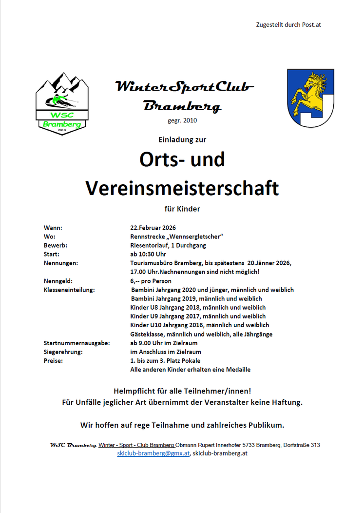Anmeldung im Tourismusbüro Bramberg - Nennschluss FR 20.02.2026 - 17:00 Uhr